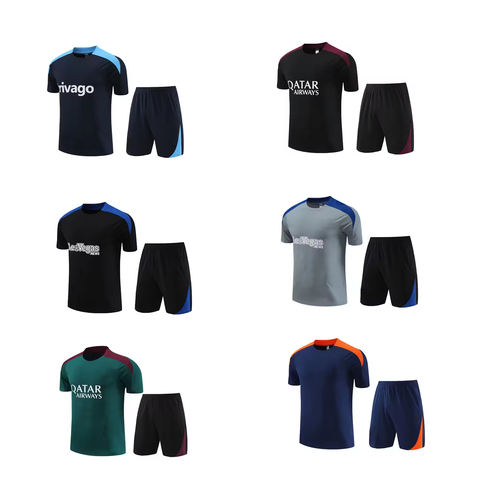 Traje de fútbol de entrenamiento popular de tienda de fábrica 24-25, pantalones cortos de manga corta, traje de fútbol, traje deportivo de verano para adultos y niños